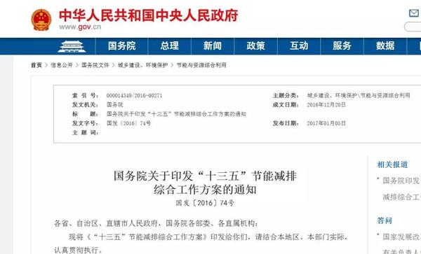 近日,經李克強總理簽批,國務院印發《“十三五”節能減排綜合工作方案》(以下簡稱《方案》),明確了“十三五”節能減排工作的主要目標和重點任務,對全國節能減排工作進行全面部署。