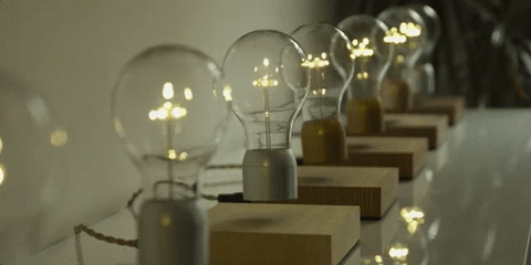 設計師在燈的底座藏有磁鐵,同時燈泡內的電感線圈可以與磁鐵相互吸附,只要打開燈就可以燈泡就會緩緩上升知道懸浮在空中。這款燈泡厲害的它并不需要任何的電池以及電源,它通過內置的感應裝置,可以加熱空氣從而轉換成能量即燈泡發光所需要的光能,這樣燈泡就能發光。