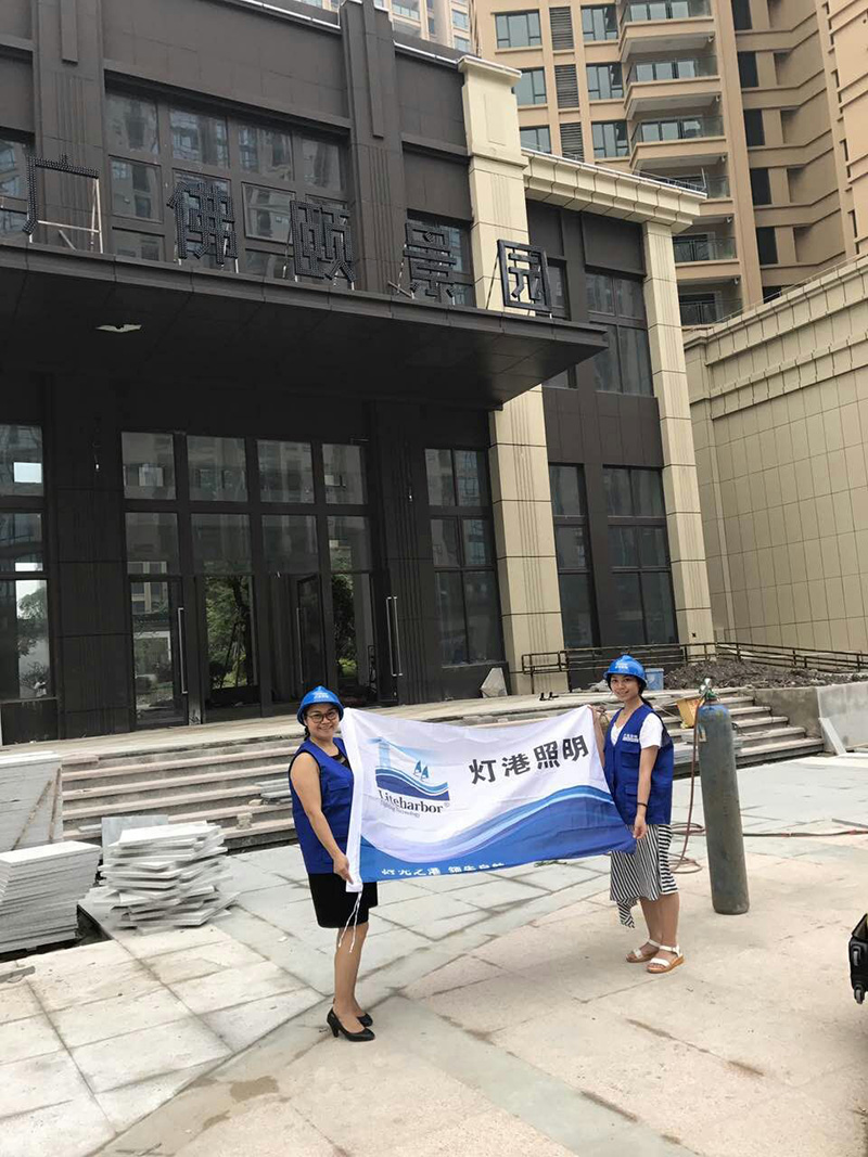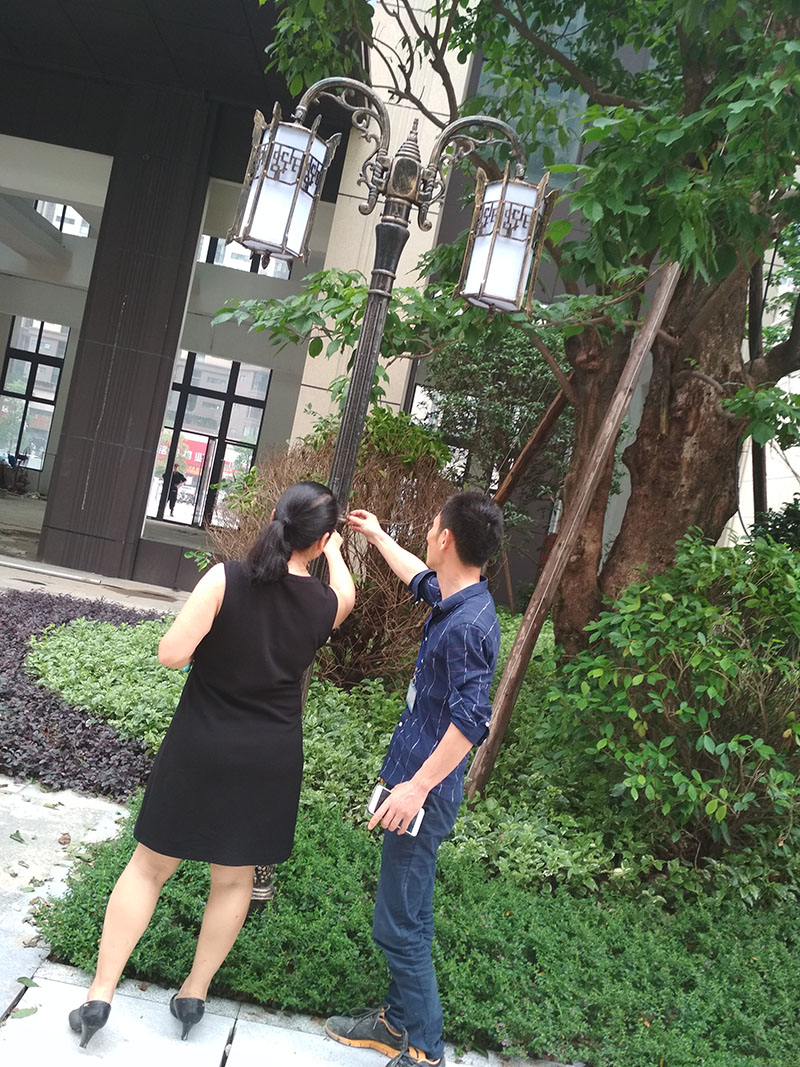 梁董一行先視察了廣佛頤景園四周環境,對項目的實際使用情況和各項系統的試運行狀態作了詳細的了解之后,5月10日到廣佛頤景園進行了戶外燈具的安裝。
