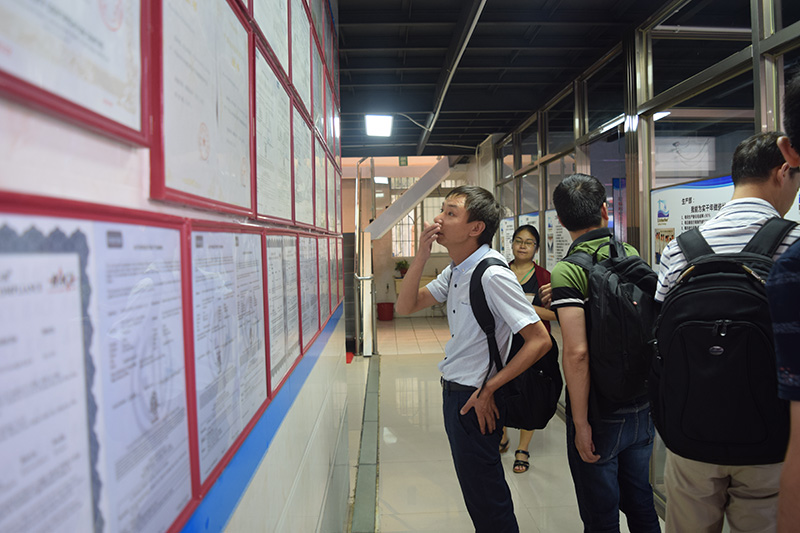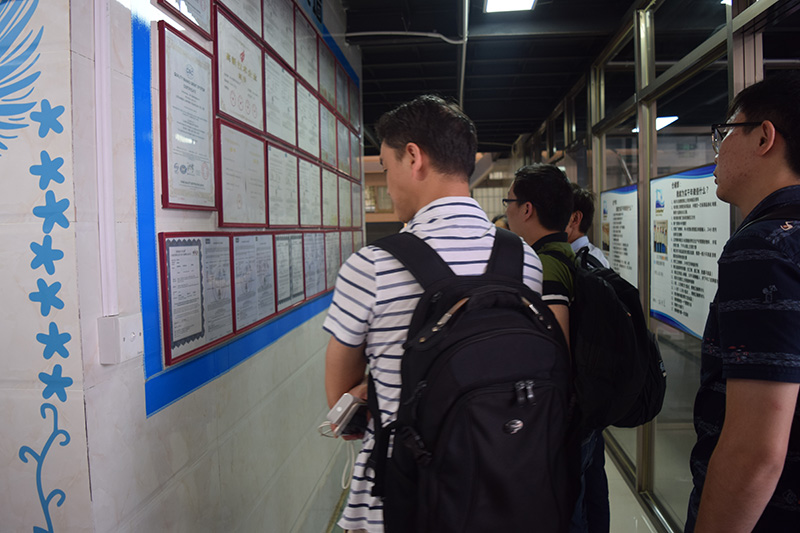 我司領(lǐng)導(dǎo)帶領(lǐng)客戶(hù)瀏覽我司環(huán)境與資質(zhì)墻