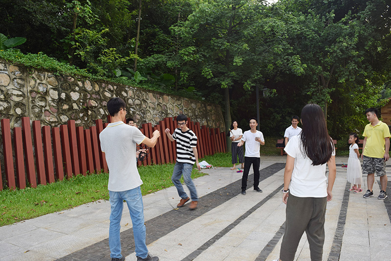 游戲關是由位位隊員開始踢滿5個然后交由下一位隊友,依次類推,快全部成員踢滿毽子數的隊伍——藍隊獲得這輪勝利并獲得精美禮品一份。這一關主要考驗我們反應速度和體力。