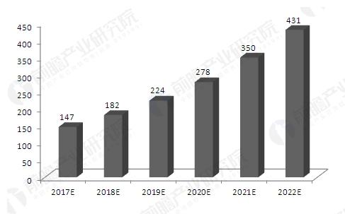? 2017-2022年中國智能照明行業市場規模預測(單位:億元)