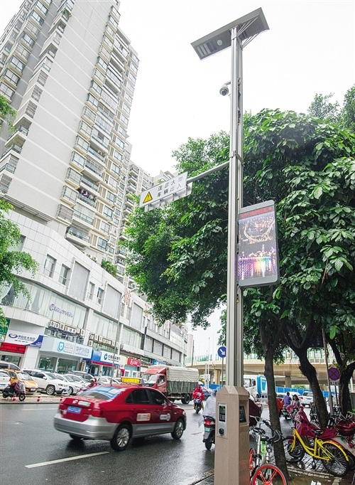 ? 那么,市民可從該智慧燈桿具體能享受到什么服務(wù)?據(jù)智慧燈桿生產(chǎn)廠家技術(shù)人員劉大彪現(xiàn)場(chǎng)演示介紹,例如免費(fèi)公共WiFi,可覆蓋燈桿周邊50米范圍,市民只需在手機(jī)上搜索鏈接,即可免費(fèi)使用,WiFi的信號(hào)強(qiáng)弱會(huì)根據(jù)周邊使用人數(shù)量的情況而定;智慧燈桿還可提供充電功能,可給電動(dòng)汽車、電單車、手機(jī)充電,屆時(shí)可根據(jù)該燈桿上機(jī)座的功率來決定充電需要多久時(shí)間。