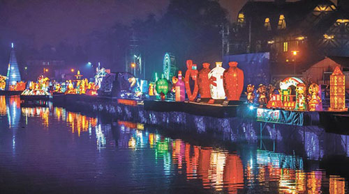 埔里鎮(zhèn)水上燈區(qū),水陸光影照映,打造浪漫花燈景觀,璀璨奪目!