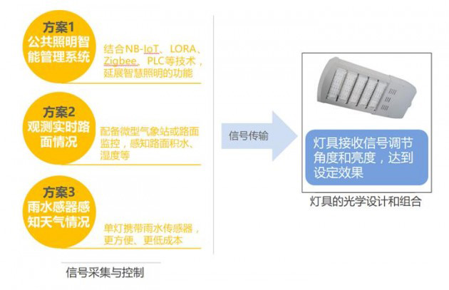 1、成熟的公共照明智能管理系統,通過NB-IoT\Zigbee\PLC等通信方案,人工遠程調節,或者設置有數據接口從氣象部門獲得當地的天氣,根據天氣情況調節配光曲線;